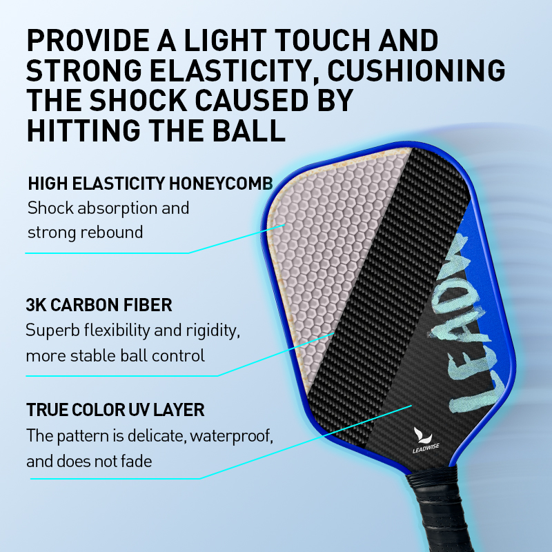 3K CARBON FIBER、TPU EDGINGS、PP HONEYCOMB CORE、HIGH REBOUND FORCE